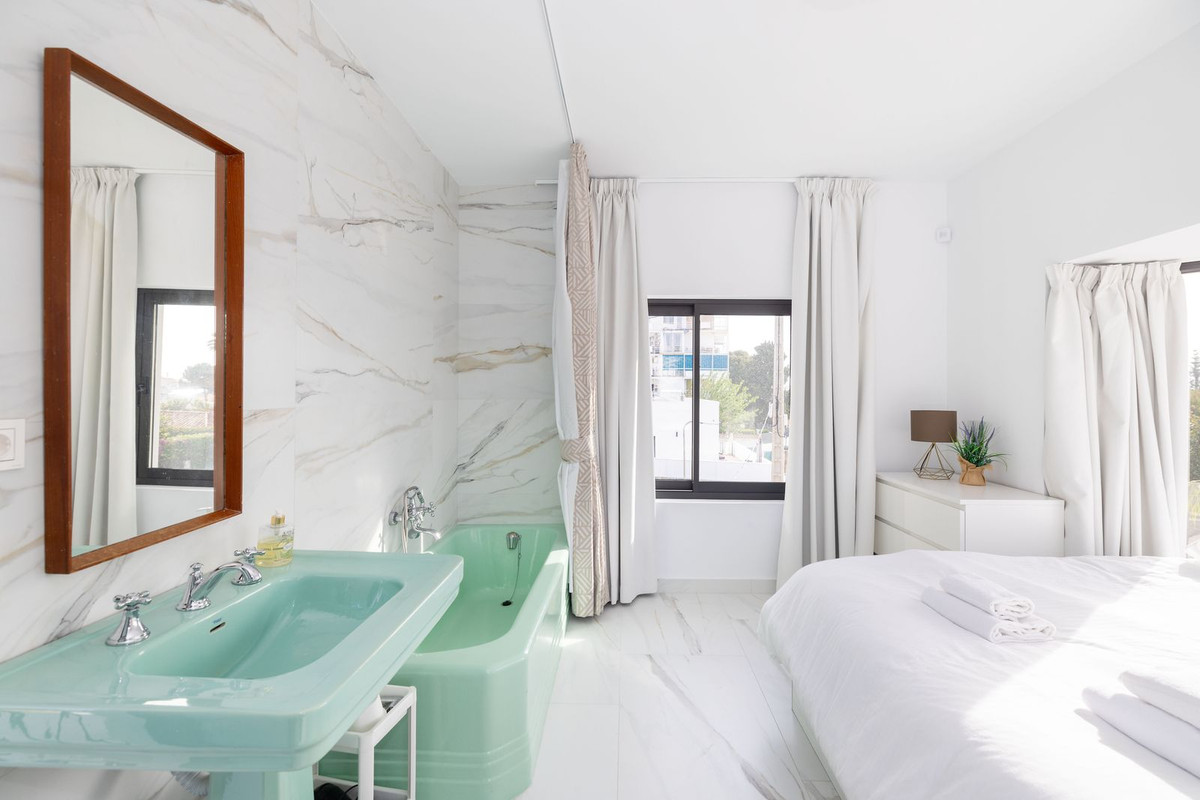 Cette propriété de plain-pied comprend six chambres spacieuses et six salles de bains, garantissant confort et accessibilité. Son orientation plein sud assure une luminosité naturelle optimale tout au long de la journée et une température agréable. Parmi ses atouts, on note des finitions haut de gamme, telles que des menuiseries intérieures en aluminium et des fenêtres extérieures CLIMALIT, assurant isolation et confort. De plus, elle est équipée d'appareils électroménagers Siemens haut de gamme, de la climatisation, de la domotique, d'un système d'alarme et d'un chauffage solaire, ce qui en fait une maison moderne et performante.